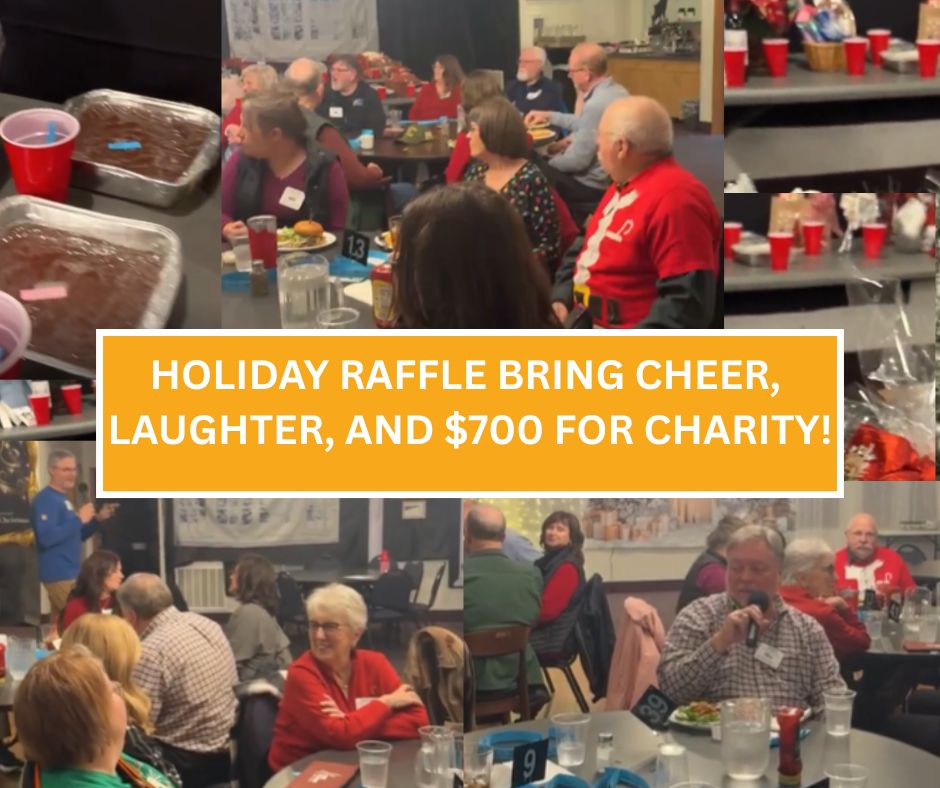 Holiday Raffle Brings Cheer, Laughter, and $700 for Rotary! This week’s Rotary meeting was filled with festive spirit as members gathered for our annual Holiday Raffle—one of the most anticipated events of the season. The tables were lined with an impressive assortment of raffle items, from beautifully wrapped gift baskets to homemade treats. A special highlight was the delicious fudge sent in by Jana Clarke, which quickly became one of the most sought‑after items of the afternoon. Members circulated around the room, placing tickets into red cups and sizing up their odds while enjoying great food and lively conversation. The holiday décor, sparkling lights, and cheerful atmosphere made the event feel especially warm and inviting. Thanks to the generosity of our members—both those who brought raffle items and those who purchased tickets—we raised about $700. These funds will support Rotary projects throughout the coming year and help us continue making a positive impact in our community. It was a wonderful afternoon of fellowship, fun, and festive giving. Thank you to everyone who participated and helped make this year’s Holiday Raffle a success!
